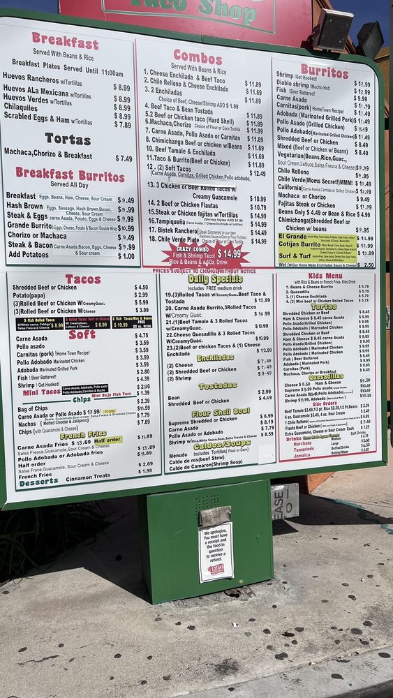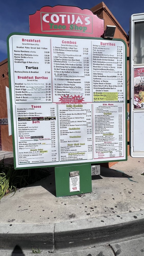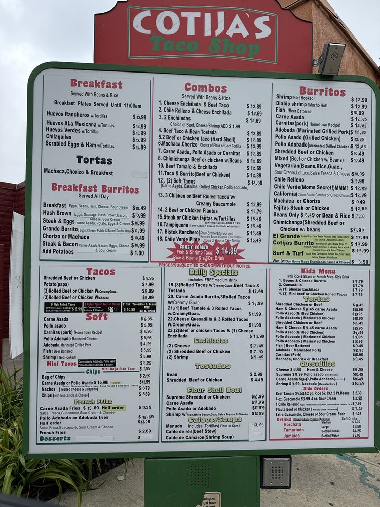 Cotija’s Taco Shop Menu (2025 Update)