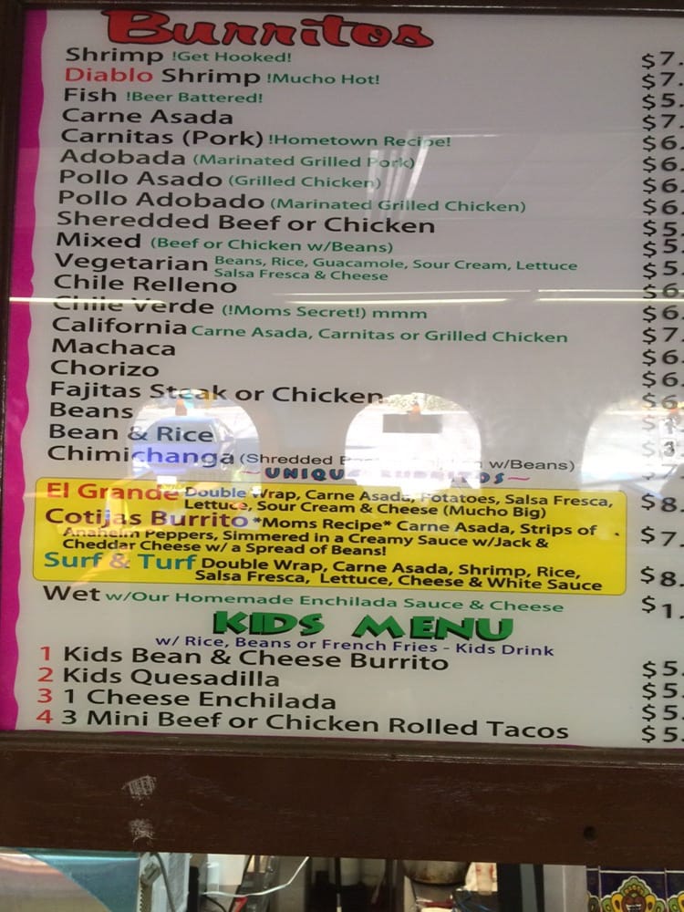 Includes Rice, white sauce, guacamole, Salsa Fresca & Cheese